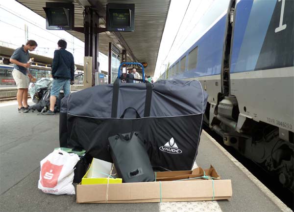 Kurz vor 14 Uhr in Toulouse angekommen, suche ich erst mal vergeblich einen öffentlich zugänglichen Fahrstuhl. Den Gedanken an die (funktionierende) Rolltreppe verwerfe ich schnell. Der Bahnhofsservice hat Erbarmen und befördert mich mit meiner Bagage mit dem Lastenaufzug. |