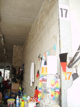 Der Eingang zu unserer Box, von der Rennstrecke aus
