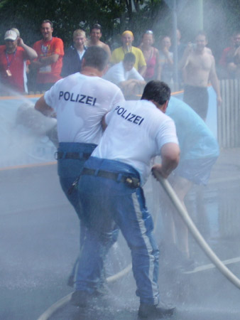 Leichter Vorteil auf Seiten der Polizei, von den Skater frenetisch angefeuert!