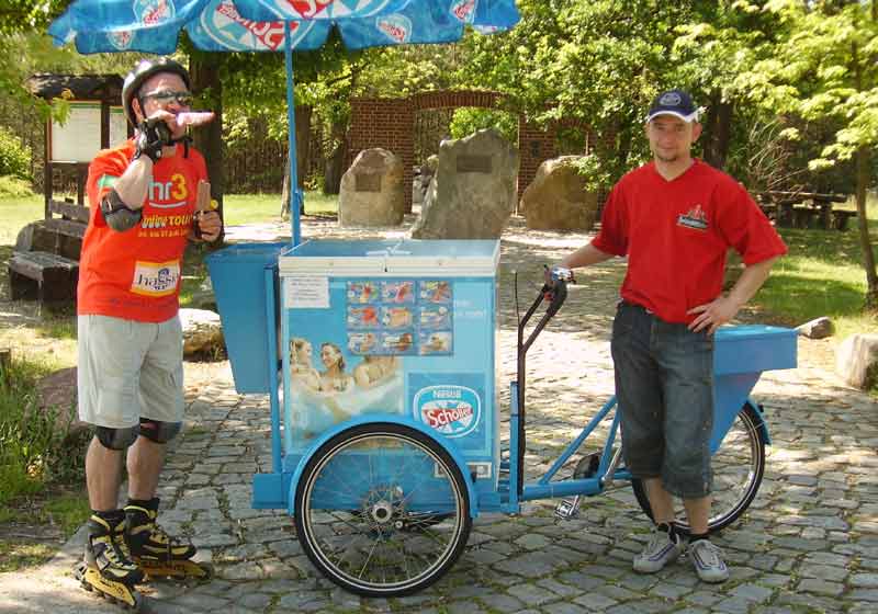 Der mobile Eismann, kurz vor der Rückkehr zum "Partwitzer Hof" macht auch noch sein Geschäft an uns!