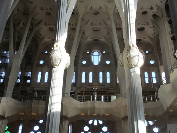 Gaudí wollte seine Kirche vor allem im Innern sehr hell haben. Die glatten weißen Fenster werden noch