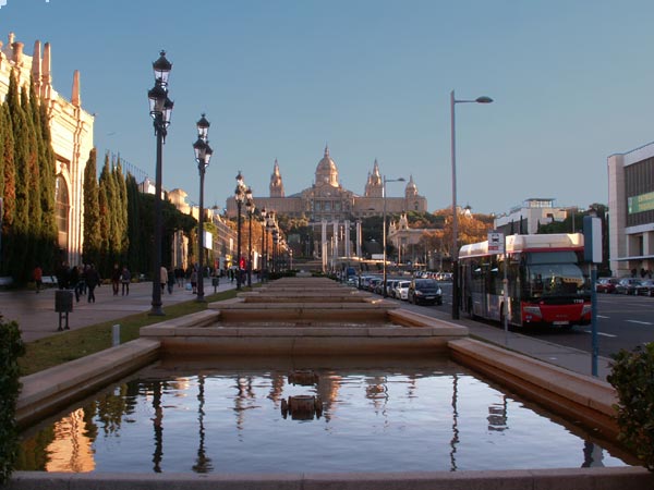 Blick von der Plaza de España auf das Palais de Katalanischen Künste mit dem