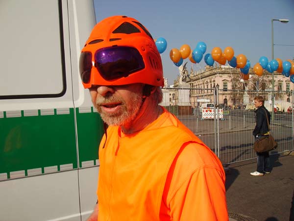 Neuartige Helme kommen auf. Schade, dass man die windschnittige Spitze hinten nicht so richtig sieht...