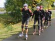 Traditionsgemäß drehen wir eine Woche vor dem Berlin-Marathon eine gemeinsame Trainingsrunde im Fläming, diesmal zum Kennenlernen der neuen Querverbindung von Fröhden über Schlenzer nach Wahlsdorf. Die meisten kommen schon am Sonnabend, um noch etwas zu rollen. Los gehts am Sonntag um zehn am → Eichenkranz in Kolzenburg. Toll, dass sich wieder einige Mitroller und -radler angefunden haben, die die rund 50 km mit uns in Angriff nehmen. |