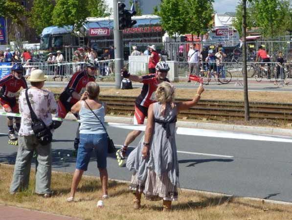 ... vorbei an der mitgebrachten Fan-Gruppe