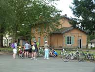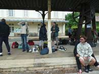 Nach 55 km erreichen wir Chalon, wo sogleich auf dem Campingplatz der Grill angeworfen wird. Am anderen Morgen werden Sandwichs für unterwegs gemacht. Wir müssen uns sputen, da der Wetterbericht ab 14 Uhr Regen in Aussicht stellt. Wir schaffen es gerade noch, das geplante Picknick in St-Genoux le National zu absolvieren, dann müssen wir unter die alte Bahnsteigüberdachung flüchten. Mit dem Verpflegungsfahrzeug, das die Sandwichs hierher transportiert hatte, fahren ein paar Leute los, um die Autos aus dem nur noch 15 km entfernten Cluny zu holen. So kommen wir alle heil und trocken an den Ausgangspunkt der Tour zurück. Der Regen hält dann noch bis zum nächsten Morgen an. Irgendwie hatten wir Glück...