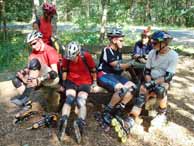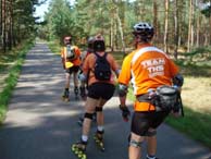 Gitta und Alexa von den Hessen-Oldies wollten die Fläming-Skate einmal ausgiebig abrollen und brachten noch Verstärkung mit. Da waren die Oldies aus der Umgebung natürlich gern dabei. Quartier wurde im »Eichenkranz« in Kolzenburg genommen - und von dort aus an 4 Tagen in wechselnden Gruppen geskatet. Vor allem Manolo war ein perfekter Führer auf ca. 270 km. Am Freitagabend fielen Hessen- und Berliner Oldies zusammen bei den Ruppis zur Grillparty ein. |