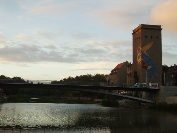 Abendstimmung an der Neiße, rechts das polnische Ufer