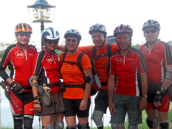 Treff mit unseren »Skatern on Tour« (Mitte) an der Fährdiele Belgern