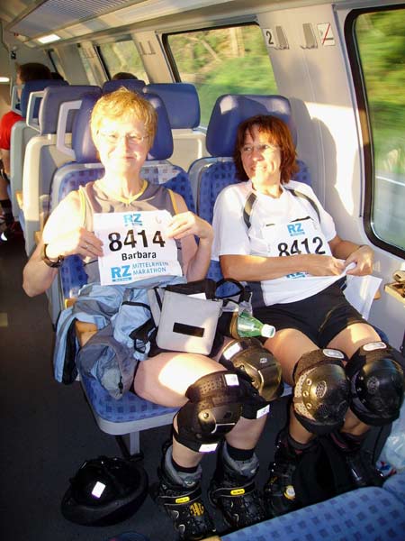 Der Doppelstockzug zum Start ist gerammelt voll. Ganz vorn finden wir noch Plätze.