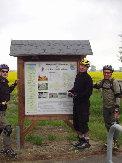 Hinweistafel zum Oder-Neiße-Radweg an der ehemaligen Bahnstrecke