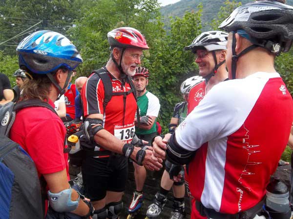 Verkehrsstopp mit Oldie-Lagebesprechung - da ist die Straße noch nass