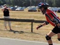 Einzelzeitfahren über 6 km am Sonnabendvormittag (27 Grad), nachmittags dann ein Mannschafts-Halbmarathon (35 Grad) und am Sonntag dann ganz nach individuellem Gusto 21 km, 42 km oder 100 km (Start um 11 Uhr, um auch ja die volle Sonne nicht zu verpassen). Trotzdem: Fünf Starter im Einzelzeitfahren (ein erster und ein zweiter Platz in den AK-Wertungen) und dann mit DREI Mannschaften in das Mannschaftszeitfahren (na gut: einige FahrerInnen waren »dazugekauft«), aber es kamen eine Speed-, eine Fitness- und eine Fun-Mannschaft zusammen (andere sagen: verbissen, sportlich und Genuss). Doch auch hier mussten einige der sengenden Sonne Tribut zollen, was aber dem Spaß keinen Abbruch tat. Insgesamt waren 11 SkaterInnen an den verschiedenen Starts, und dazu gesellte sich die anfeuernde und fotografierende Fangemeinde.